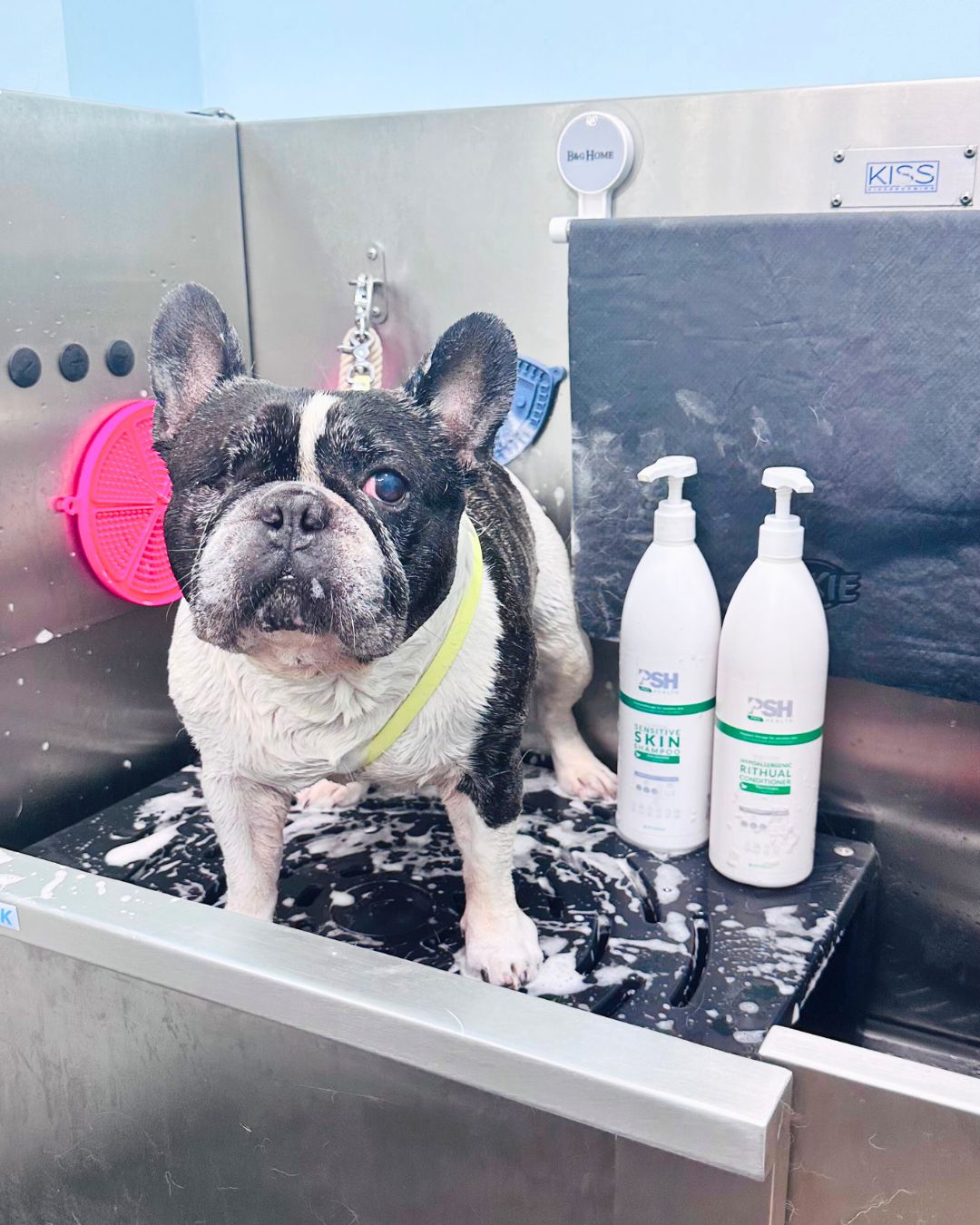 Aqui, o banho deixa de ser apenas higiene: passa a ser parte do cuidado global do cão.